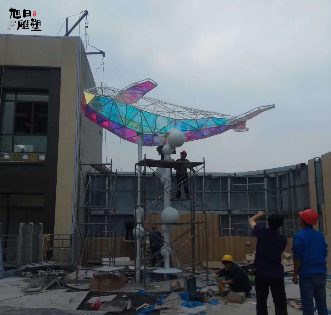 1、不銹鋼雕塑依據(jù)確定的圖片,在電腦中專業(yè)分析,放樣,用合理協(xié)調(diào)的比例放大到雕塑所需高度,以及其它各個角度,各個部位的形狀。
